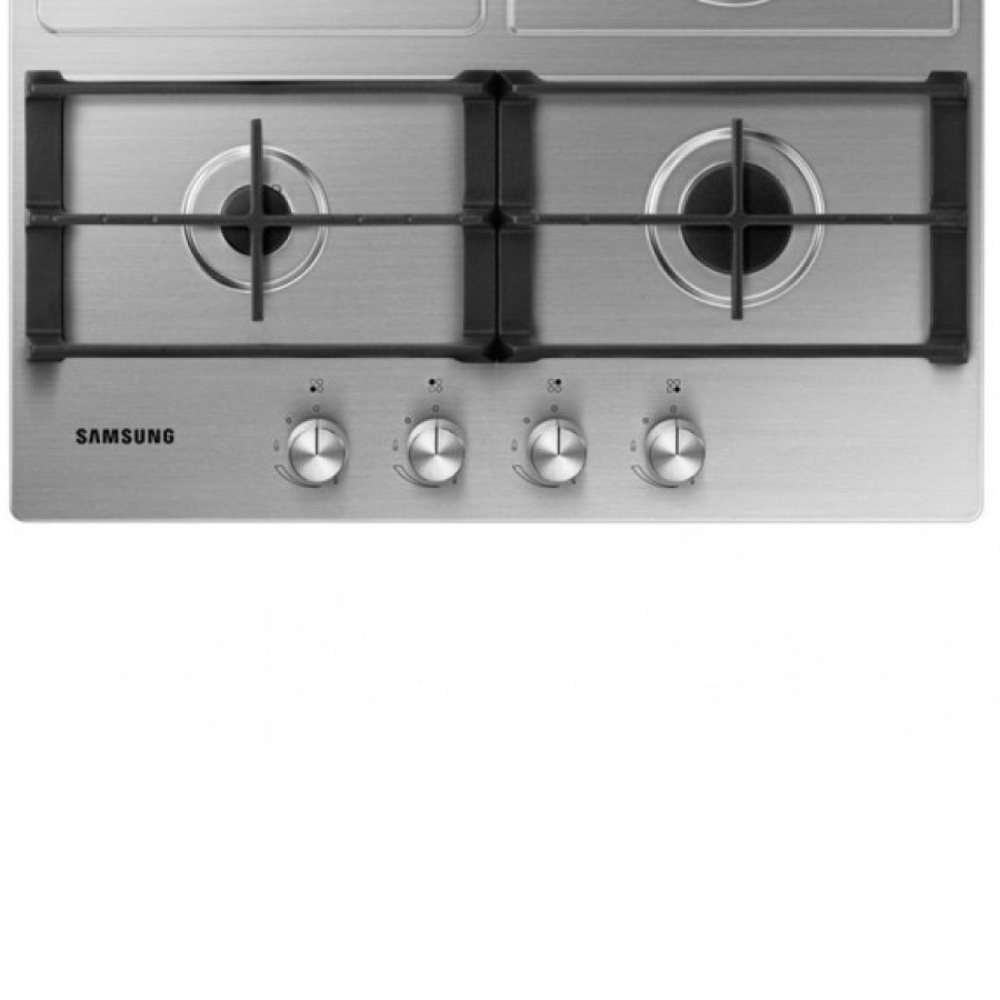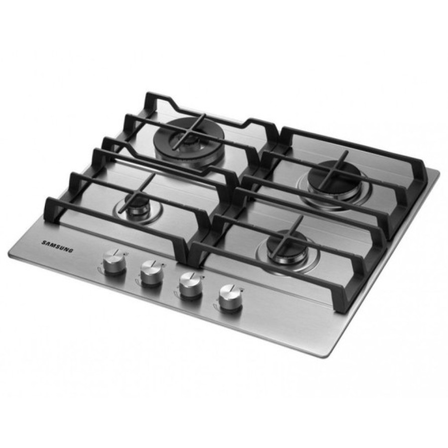 SAMSUNG ბრენდის გაზქურის ზედაპირი, რომელიც გამოირჩევა პრაქტიკული დიზაინით და ყოველდღიური გამოყენებისთვის მოსახერხებელი ფუნქციებით.