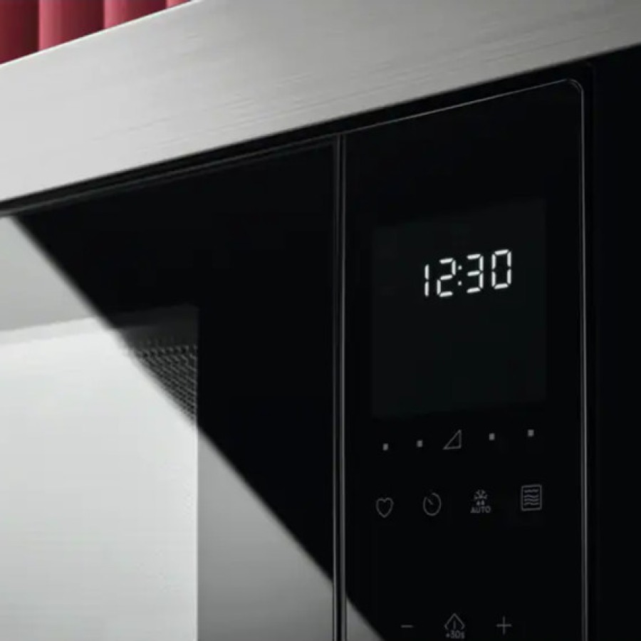 ჩასაშენებელი მიკროტალღური ღუმელი ყოველდღიური გამოყენებისთვის, თანამედროვე დიზაინითა და მოსახერხებელი მართვით.
